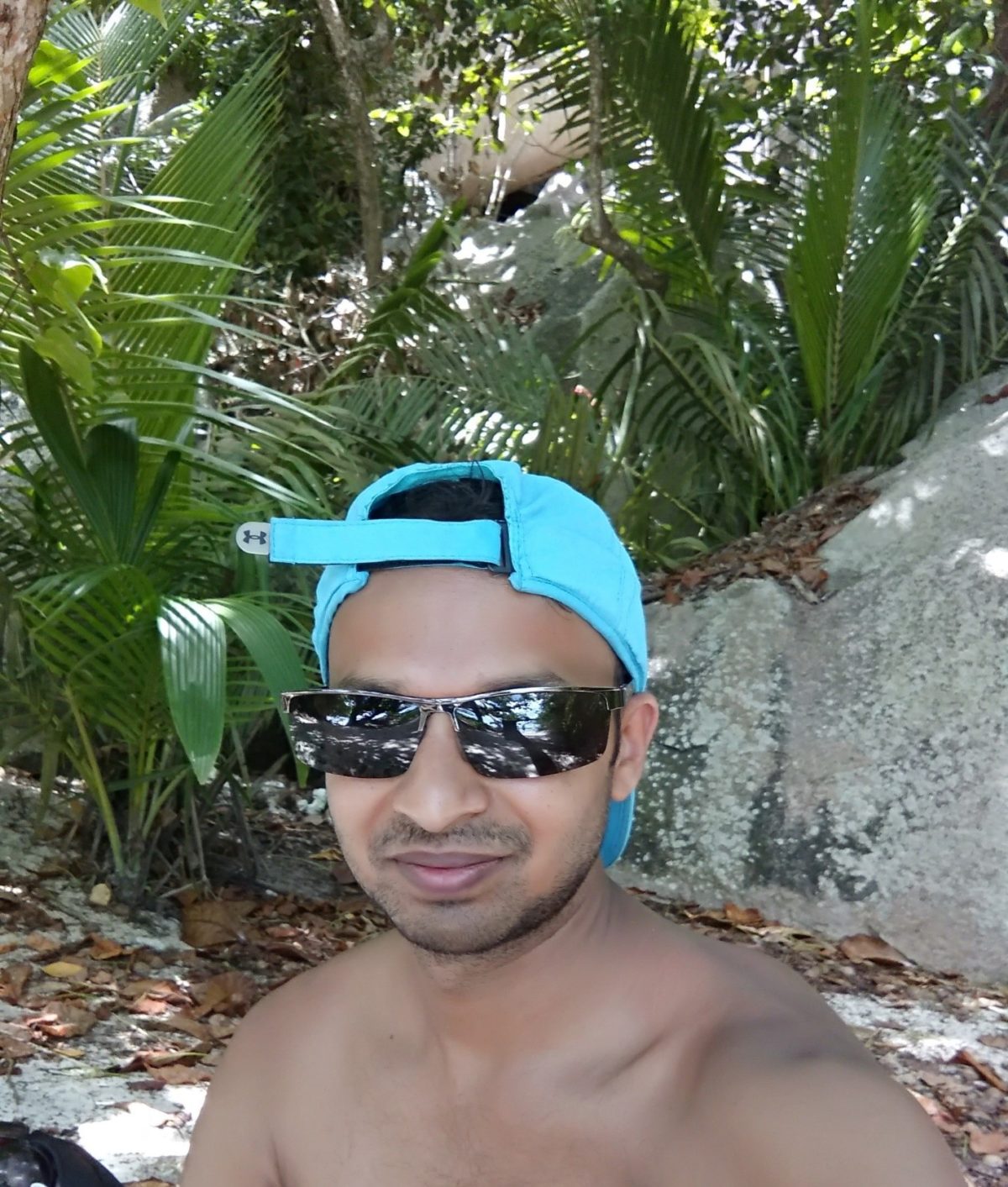 We walked to the place, on the beach, where trees were in abundance and had a place to sit and relax. We spotted one such place and we sat there to relax. Within a short walk, my t-shirt was completely wet due to sweating and I found a place on tree to hang it for few minutes for drying and now I was more prone to tanning.